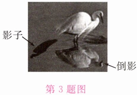 3. 如图所示,白鹭站在水中,形成了两个“影”。下列说法不正确的是 ………… ()