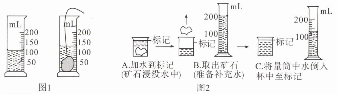 (5)另有一较大矿石,放不进量筒,因此丙同学利用一只烧杯,按图2所示方法来测量矿石的体积。此测量方法测得的矿石体积,与其真实值相比______(填“偏大”“偏小”或“一样大”)。
