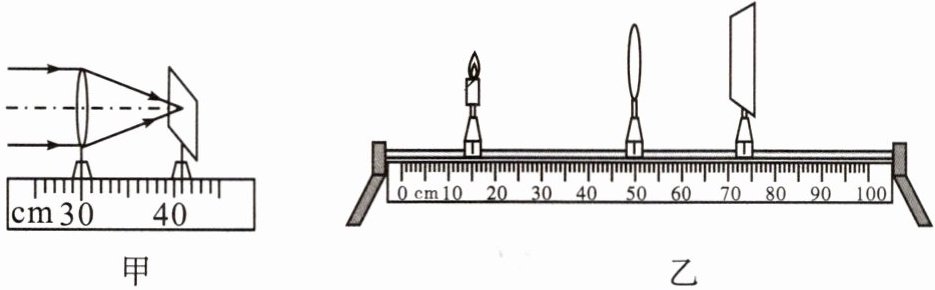 (2) 如图乙所示,将凸透镜固定在光具座50cm刻度线处,把点燃的蜡烛放置在光具座15cm刻度线处时,此时物距为______cm,移动光屏,能成倒立、______的实像,生活中的______就是利用这个原理制成的。