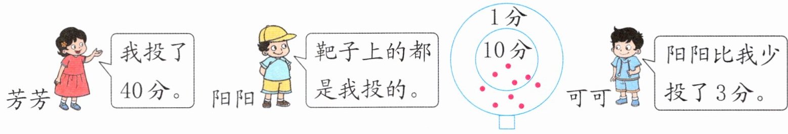 3. 投飞镖(biāo)。可可投了多少分?可可和阳阳一共投了多少分?(6分)