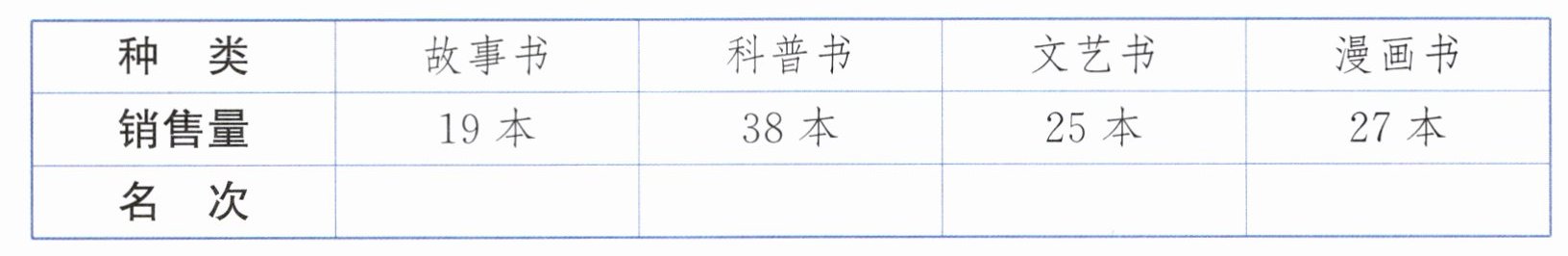 (1) 把它们的销售量名次排出来,填在上表中。(2分)