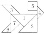 3. 根据给出的七巧板图,在图案上标出七巧板的编号。