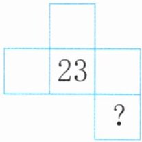① 解析:在百数表中,横向数从左往右依次递增1,纵向数从上往下依次递增10。先根据纵向规律,"23"下面一行对应的数比23大10,即23+10=33。再根据横向规律,"33"右边一个数比33大1,即33+1=34。所以"?"处应填的数是34。