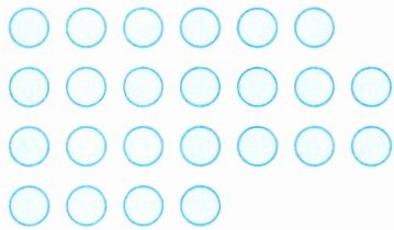 点拨:1. 观察图形找规律:先观察图形中每行或每列的数量情况,本题中每行的数量不完全相同,如第一行有6个$◯$,第二、第三行有7个$◯$,第四行有4个$◯$。