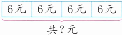 点拨:(1)先从图中找与问题相关的条件,即一本笔记本6元。求4本笔记本一共多少钱,其实就是把4个6元合起来。如图: