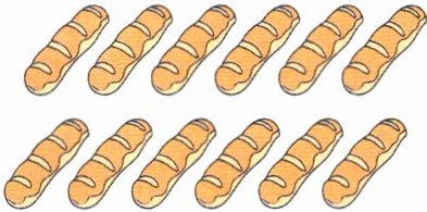 点拨:(1)可以1个1个地分,先每份各分1个,分掉2个,再每份各分1个,又分掉2个,这样轮流分,直到把面包分完。结果每份分得的数量如图(用○表示面包):