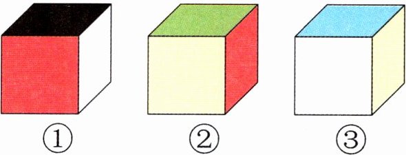 3. 一个正方体的六个面上分别涂有红、绿、黄、白、蓝、黑六种颜色,你能根据下面这个正方体的三种不同摆法,判断出每种颜色的对面分别是什么颜色吗?