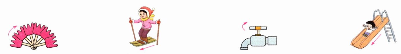 3. 下面的现象中,是平移的在括号里画“√”,是旋转的在括号里画“○”。