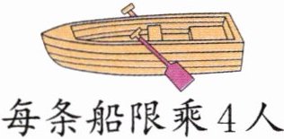$31 ÷ 4 = 7$(条)……3(人) $7 + 1 = 8$(条) 至少需要租 8 条船 $64 ÷ 8 = 8$(元) 每条船的租金是 8 元
