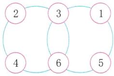 3. 把1、2、3、4、5、6六个数字填入小圆圈内,使每个大圆圈上的四个数字的和都是15。