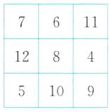 1. 把4、5、6、9、10、11、12填入下面的空格里,使横行、竖列、斜行上的三个数之和都等于24。