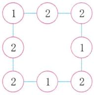 2. 用1、2填空,使正方形每条边上数字的和是5,四条边上数字的和是13。