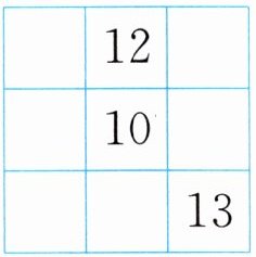 解析:第三行第二列空格里的数为 $30 - 12 - 10 = 8$;第三行第一列空格里的数为 $30 - 8 - 13 = 9$;第一行第一列空格里的数为 $30 - 13 - 10 = 7$;第二行第一列空格里的数为 $30 - 7 - 9 = 14$;第一行第三列空格里的数为 $30 - 7 - 12 = 11$;第二行第三列空格里的数为 $30 - 14 - 10 = 6$。