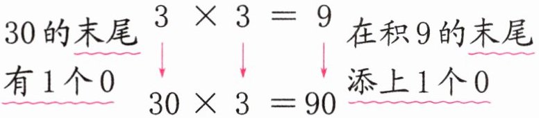 口算整十数乘一位数时,可以先用整十数“0”前面的数乘一位数,再在积的末尾添上