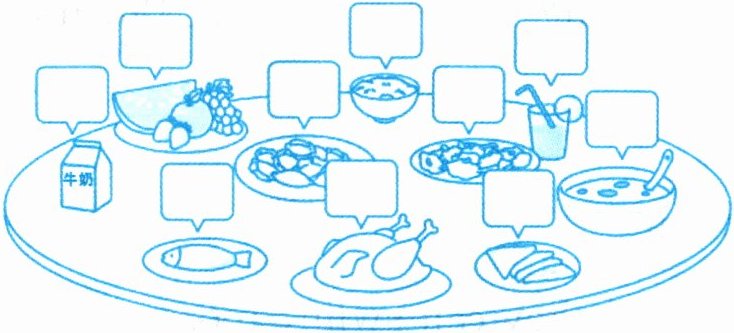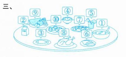 ①soup ②milk ③fish ④rice ⑤juice ⑥pancakes
