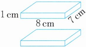 解:将两个物体叠放,使最大面重合,此时新长方体的长为8cm,宽为7cm,高为$1 + 1 = 2$cm。