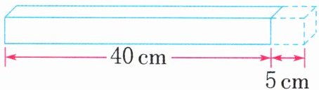 例2 如图,一个长方体长40cm,横截面是正方形,如果将它的长增加5cm,那么它的表面积就增加$80cm^2。$原来这个长方体的表面积是多少平方厘米?
