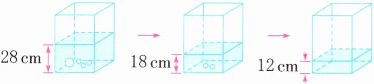 第一次水面下降高度 $28 - 18 = 10 \, \text{cm}$,
