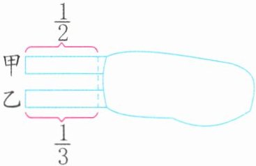 B 解析:两条彩带露出的部分一样长,甲露出$\frac{1}{2}$,说明全长是露出部分的2倍;乙露出$\frac{1}{3}$,说明全长是露出部分的3倍。所以乙比甲长。