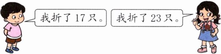 男孩折了$17$只小纸船,女孩折了$23$只小纸船,则两人一共折的小纸船数量为:$17 + 23 = 40$(只),