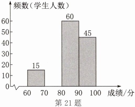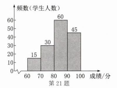 21.(8 分)水是生命之源,每一滴水都来之不易,让我们共同守护这份宝贵的资源,为未来创造更美好的生活。某校举行了水资源保护知识竞赛,为了解本次知识竞赛成绩情况,从参赛学生中随机抽取了若干名学生的初赛成绩进行统计,得到如下不完整的统计图表。