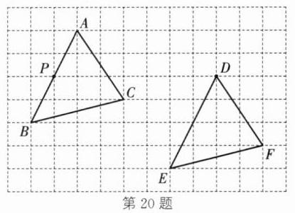 20.(6 分)在如图所示的网格图中,每个小正方形的边长均为 1,三角形 ABC 的三个顶点 A,B,C 都在格点(网格线的交点称为格点)上。现将三角形 ABC 平移,使点 A 平移到点 D,点 B,C 的对应点分别是 E,F。