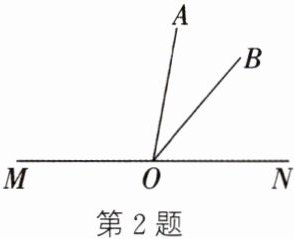 2. 如图,点O在直线MN上,过点O引射线OA和OB,且$∠MOA = 2∠BON$,$∠BON比∠AOB大20^{\circ}$,求$∠MOA和∠AOB$的度数。