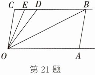 21. (10分)如图,射线$OA//射线CB$,$∠C = ∠OAB = 100^{\circ}$,点$D$,$E在线段CB$上,且$∠DOB = ∠BOA$,$OE平分∠COD$。