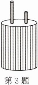 3. 如图,两根铁棒直立于桶底水平的木桶中,在桶中加入水后,一根露出水面的长度是它的$\frac{1}{3}$,另一根露出水面的长度是它的$\frac{1}{5}$.两根铁棒的长度之和为55cm,此时木桶中水的深度是______cm.