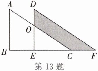 13. 如图,两个完全一样的直角三角形有一部分重叠在一起,$AC与DE交于点O$. 若$AB = 10$,$DO = 4$,$BE = 6$,则涂色部分的面积为______.