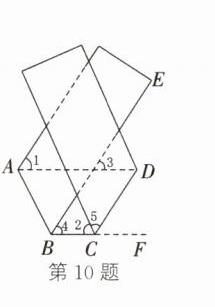 10. 如图,将一条对边互相平行的纸带进行两次折叠,折痕分别为$AB$,$CD$. 若$CD// BE$,且$∠2 = 66^{\circ}$,则$∠1$的度数是()