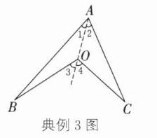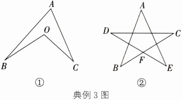 点拨 (1)连结AO并延长,为利用三角形内角或外角的性质创造条件。(2)利用(1)中的结论和对顶角相等,把5个角的和转化成三角形的内角和。