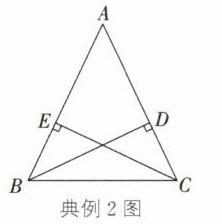 典例2 求证:等腰三角形两腰上的高线长相等。