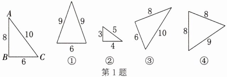 1. 如图,下列三角形中,与$△ABC$全等的是()