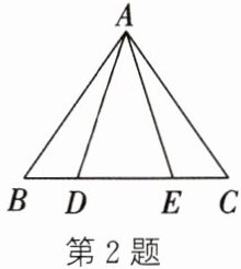 2. 如图,$AB= AC$,$AE= AD$,点$B$,$D$,$E$,$C$在同一条直线上,要利用“SSS”判定$△ABE≌△ACD$,还需要添加的一个条件可以是()