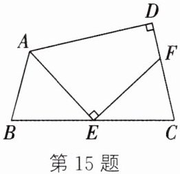 15. (8分)如图,在四边形$ABCD$中,$∠D= 90^{\circ }$,$E是边BC$上一点,连结$AE$,$EF⊥AE$,交$CD于点F$。