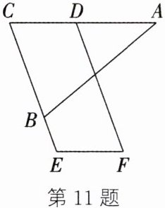 11. 如图,在$\triangle ABC$中,$AB= AC$,延长$CB至点E$,点$D在边AC$上,以$CE$,$CD为边作□ DCEF$。若$∠F= 70^{\circ }$,则$∠A$的度数为______$^{\circ }$。