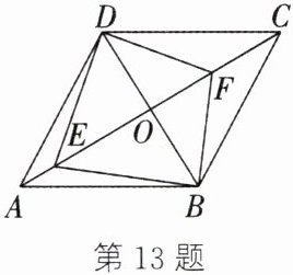 13. 如图,在$□ ABCD$中,对角线$AC$,$BD相交于点O$,$BD= 12cm$,$AC= 20cm$。现点$E从点A$出发,以$1cm/s的速度向点C$运动,同时点$F从点C$出发,以$2cm/s的速度向点A$运动。在点$E与点F$相遇前,四边形$DEBF$______(填“会”或“不会”)成为平行四边形。