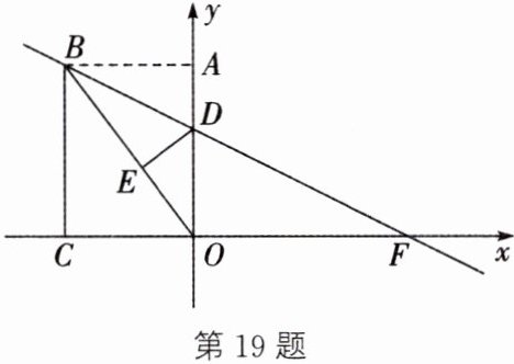 19. (14分)分类讨论思想 如图,在矩形ABCO中,点C在x轴上,点A在y轴上,点B的坐标为(-6,8).将矩形ABCO沿直线BD翻折,使得点A落在对角线OB上的点E处,直线BD与OA,x轴分别交于点D,F.