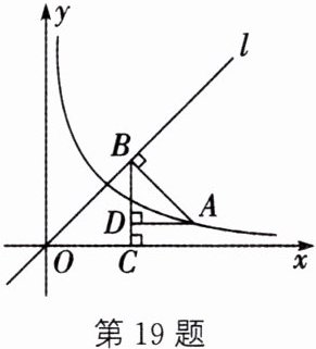 (2)如图,直线 $ l $ 为正比例函数 $ y = x $ 的图象,点 $ A $ 在反比例函数 $ y = \frac{k}{x}(x > 0) $ 的图象上,过点 $ A $ 作 $ AB \perp l $ 于点 $ B $,过点 $ B $ 作 $ BC \perp x $ 轴于点 $ C $,过点 $ A $ 作 $ AD \perp BC $ 于点 $ D $. 记 $ \triangle BOC $ 的面积为 $ S_{1} $,$ \triangle ABD $ 的面积为 $ S_{2} $,求 $ S_{1} - S_{2} $ 的值.