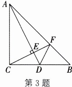 3. 如图,在$Rt△ABC$中,$∠ACB= 90^{\circ}$,$AC= CB$,$D为BC$的中点,$CE⊥AD于点E$,其延长线交$AB于点F$,连结$DF$. 求证:$∠ADC= ∠BDF$.