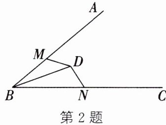 2. 如图,$D为锐角∠ABC$内一点,点$M在边BA$上,点$N在边BC$上,$DM= DN$,$∠BMD+∠BND= 180^{\circ}$. 求证:$BD平分∠ABC$.