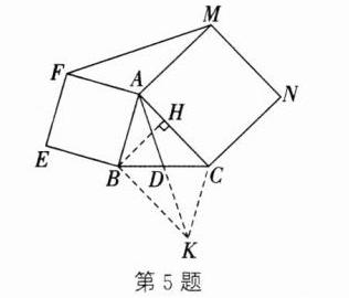 5. 如图,分别以$\triangle ABC的边AB$,$AC为边向\triangle ABC外作正方形ABEF和正方形ACNM$,$D是BC$的中点,连结$AD$,$FM$。