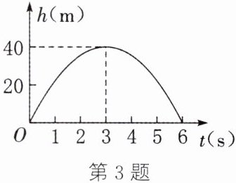 3. 从地面竖直向上抛出一小球, 小球的高度 $h(\mathrm{m})$ 与小球的运动时间 $t(\mathrm{s})$ 之间的函数关系如图所示, 有下列结论: ① 小球在空中经过的路程是 $40\mathrm{m}$; ② 小球抛出 $3\mathrm{s}$ 后, 速度越来越快; ③ 小球抛出 $3\mathrm{s}$ 时的速度为 $0\mathrm{m}/\mathrm{s}$; ④ 当小球的高度为 $30\mathrm{m}$ 时, $t = 1.5$. 其中, 正确的是 (
