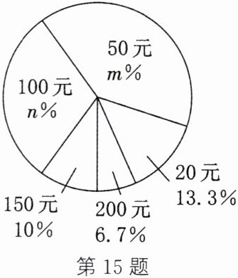 15.(12分)在一次爱心捐款活动中,某中学全体同学积极踊跃捐款。现抽查了九年级一班同学的捐款情况,并绘制出如下统计表和如图所示的统计图。
