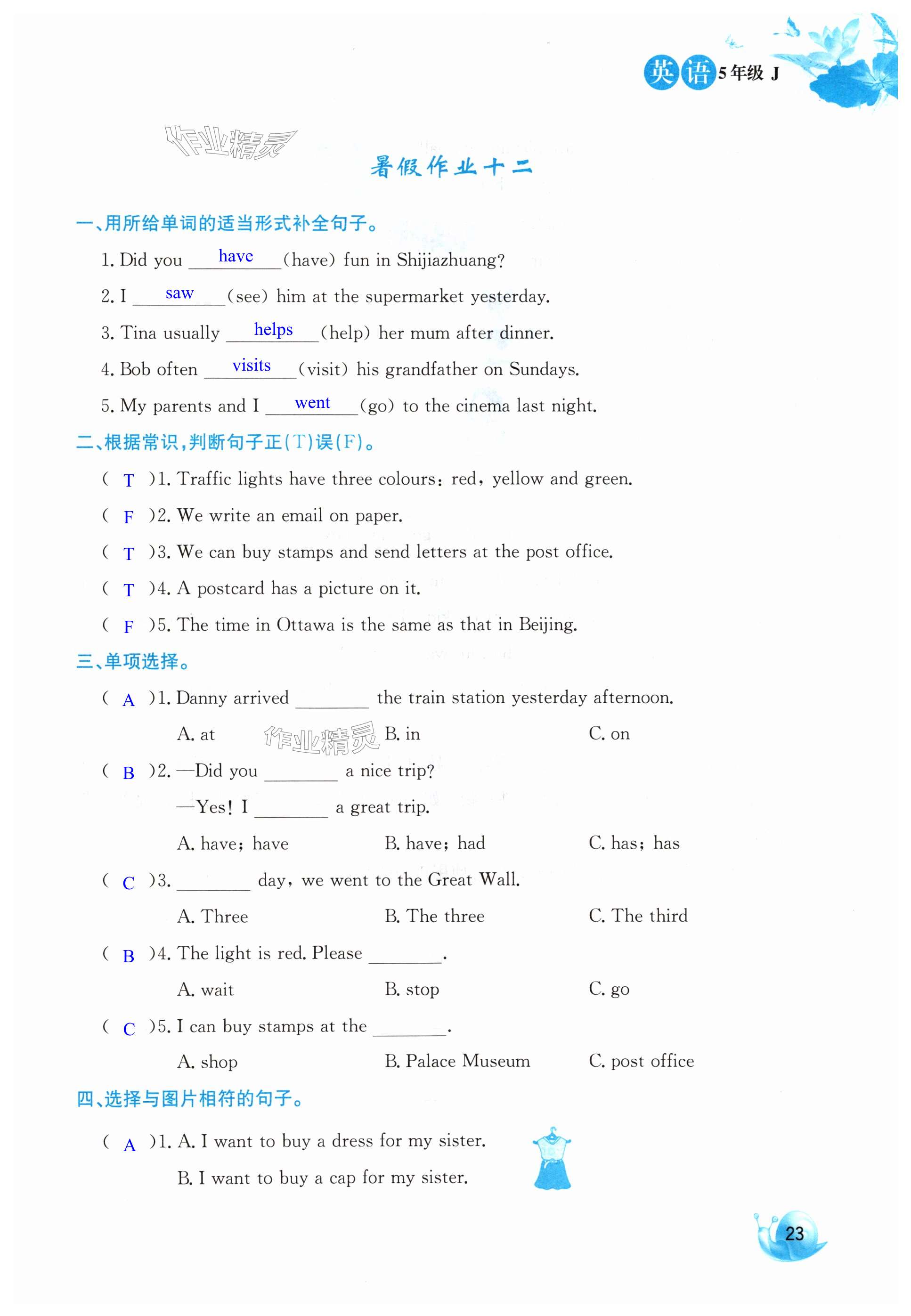 注:目前有些书本章节名称可能整理的还不是很完善,但都是按照顺序排列的,请同学们按照顺序仔细查找。练习册 2025年暑假生活河北美术出版社五年级英语冀教版 答案主要是用来给同学们做完题方便对答案用的,请勿直接抄袭。