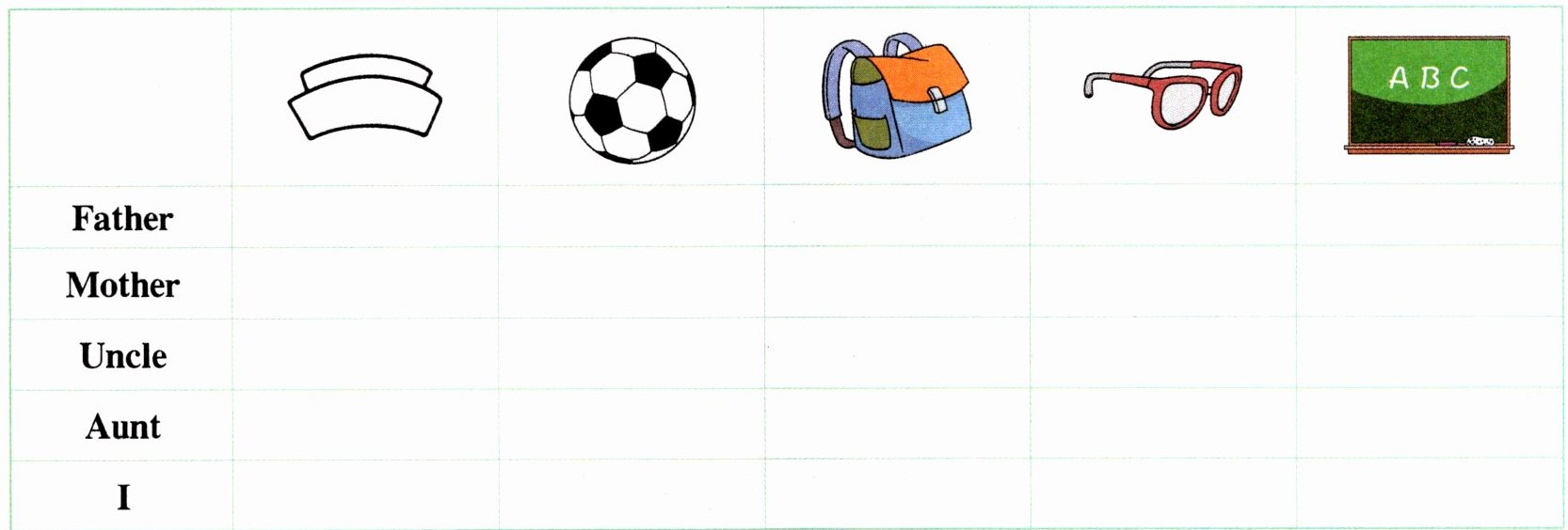 There are five people in my family. They are my father, my mother, my uncle, my aunt and me. My father is a doctor. He's quiet. He wears glasses. My mother is a nurse. She has long hair. She's short and thin. My uncle is a football player. He's tall and strong. My aunt is a teacher. She teaches English. She's friendly. This is me. My name is Mike. I'm a student.