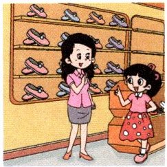Lucy: Size 7, please. Salesgirl: Here you are.