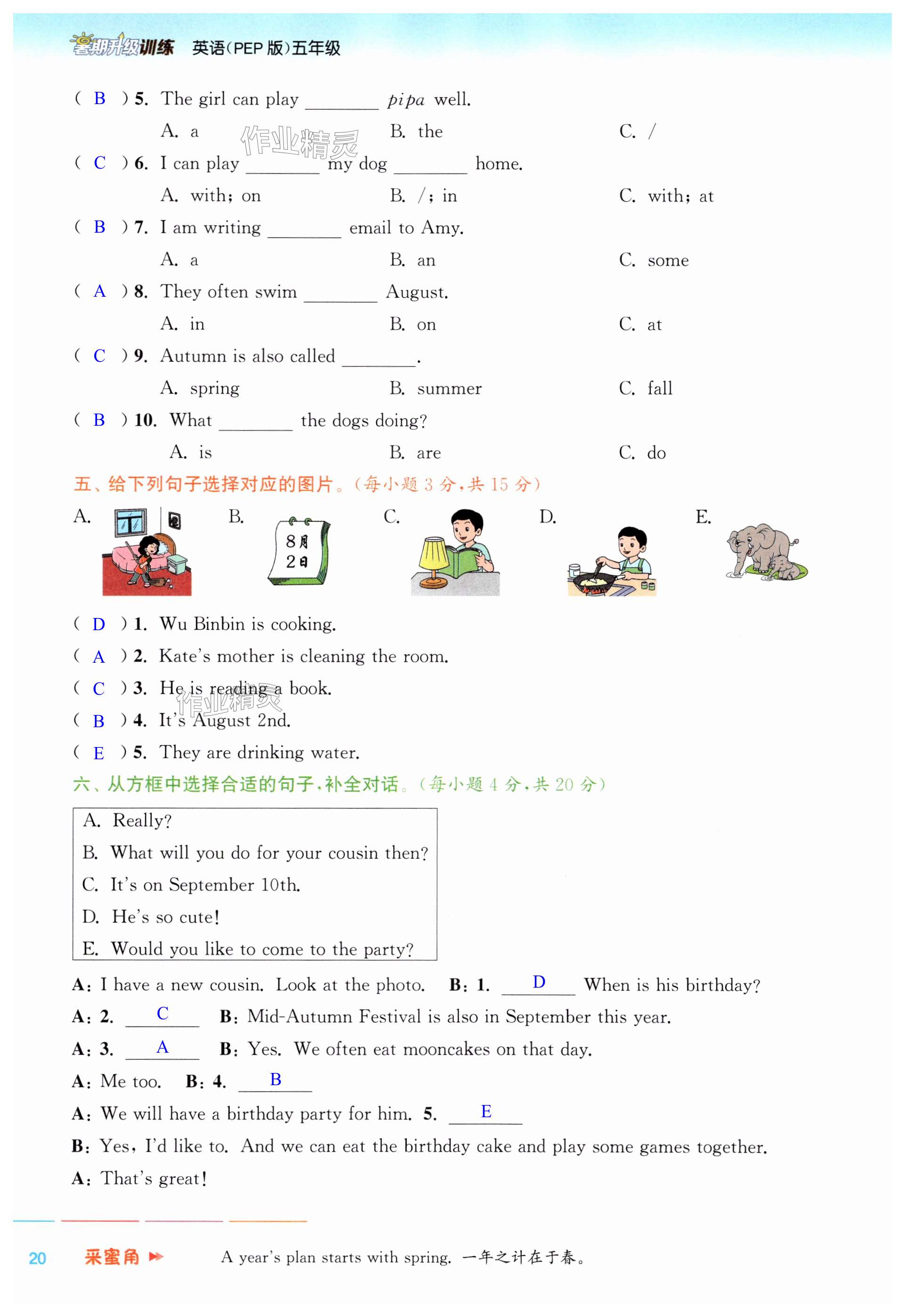 注:目前有些书本章节名称可能整理的还不是很完善,但都是按照顺序排列的,请同学们按照顺序仔细查找。练习册 2025年暑期升级训练浙江教育出版社五年级英语人教版 答案主要是用来给同学们做完题方便对答案用的,请勿直接抄袭。