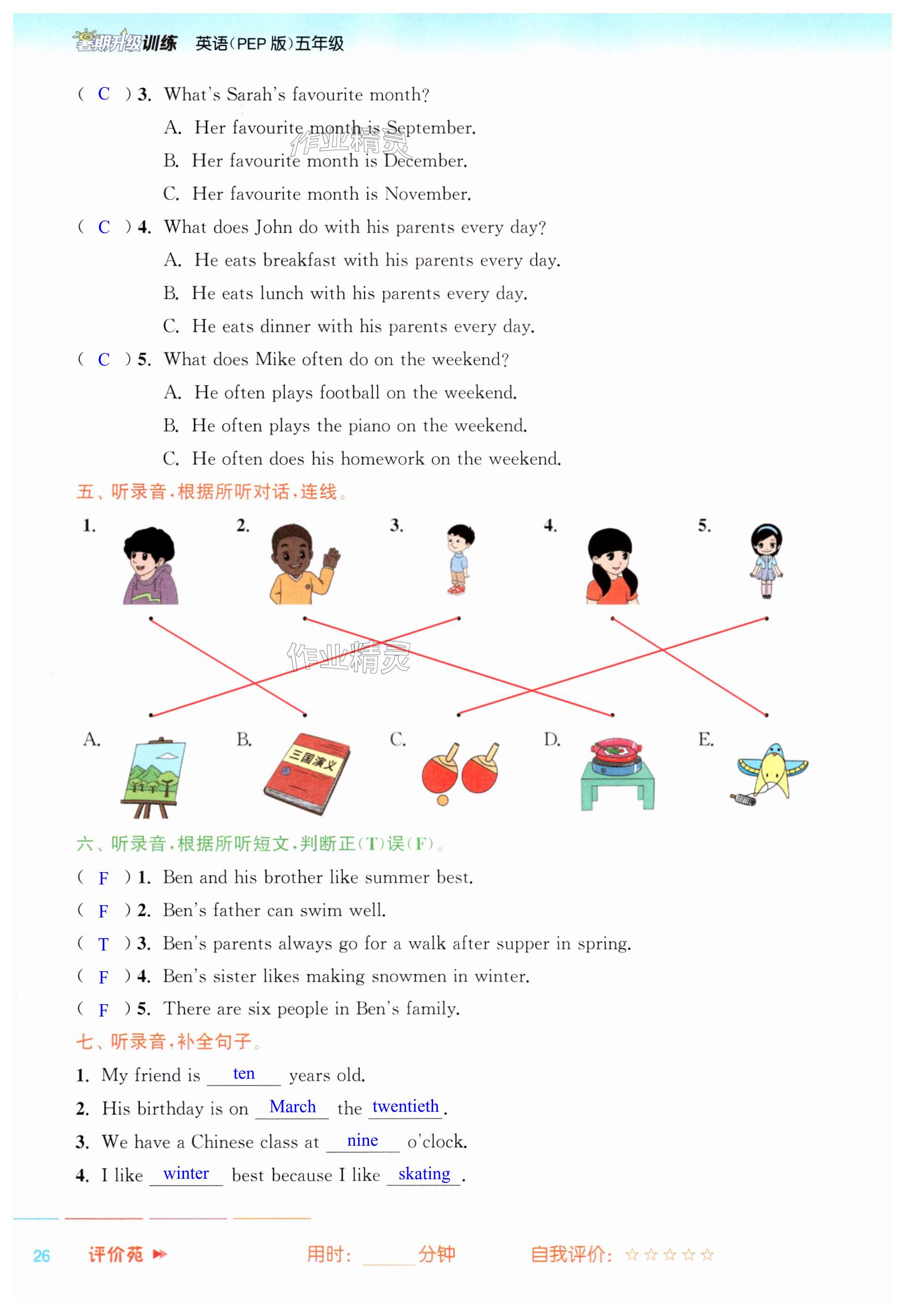 注:目前有些书本章节名称可能整理的还不是很完善,但都是按照顺序排列的,请同学们按照顺序仔细查找。练习册 2025年暑期升级训练浙江教育出版社五年级英语人教版 答案主要是用来给同学们做完题方便对答案用的,请勿直接抄袭。